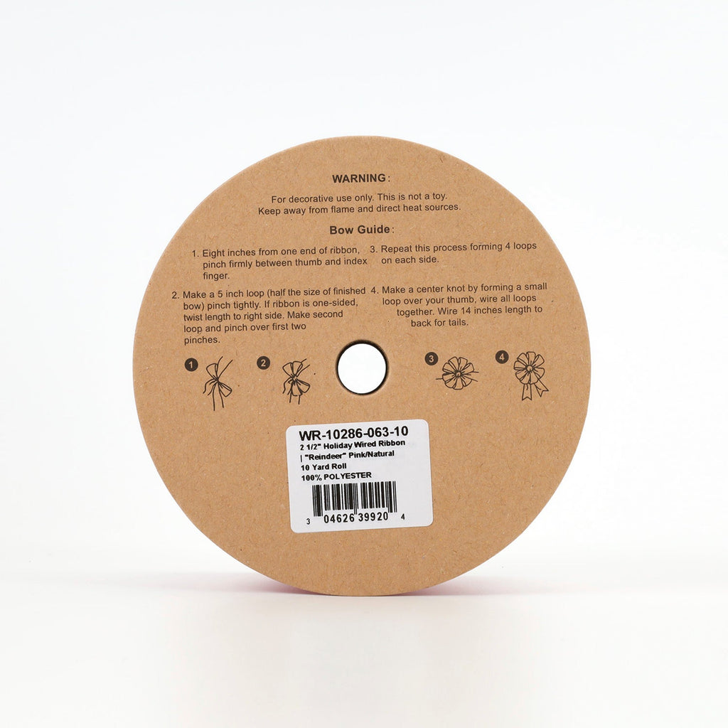 2 1/2" HOLIDAY WIRED RIBBON "REINDEER/SNOWFLAKE" PINK/NATURAL 10 Yard 6.3X915cm