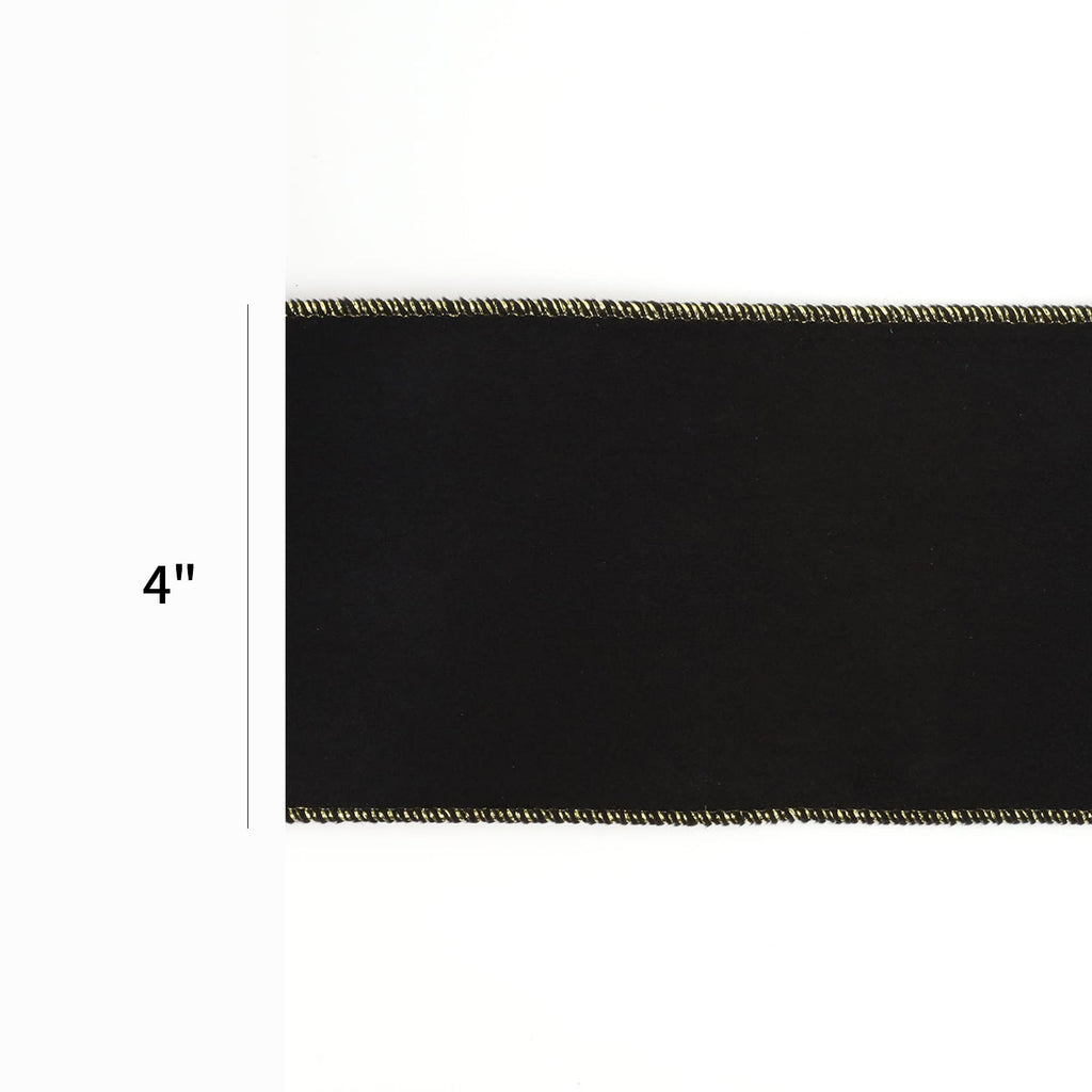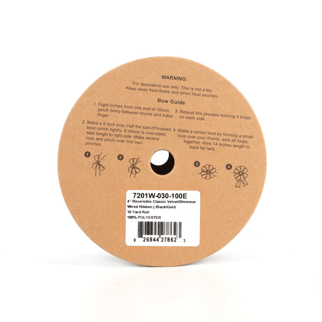 4" REVERSIBLE CLASSIC VELVET/SHIMMER WIRED RIBBON BLACK/GOLD 10 YARD 10X915cm