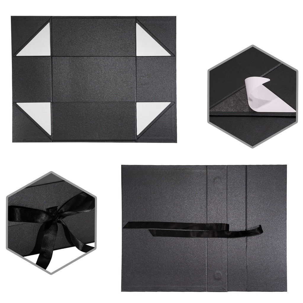 - STRONG & PREMIUM QUALITY: Made of high quality cardboard. Our box include stronger magnets for the snap close lid. Each box also includes 4 corner stickers which are double sided adhesive. The corner stickers can help you hold the box in shape if you wish to use them. Elegant color with ribbon deco make your gift box packaging gorgeous