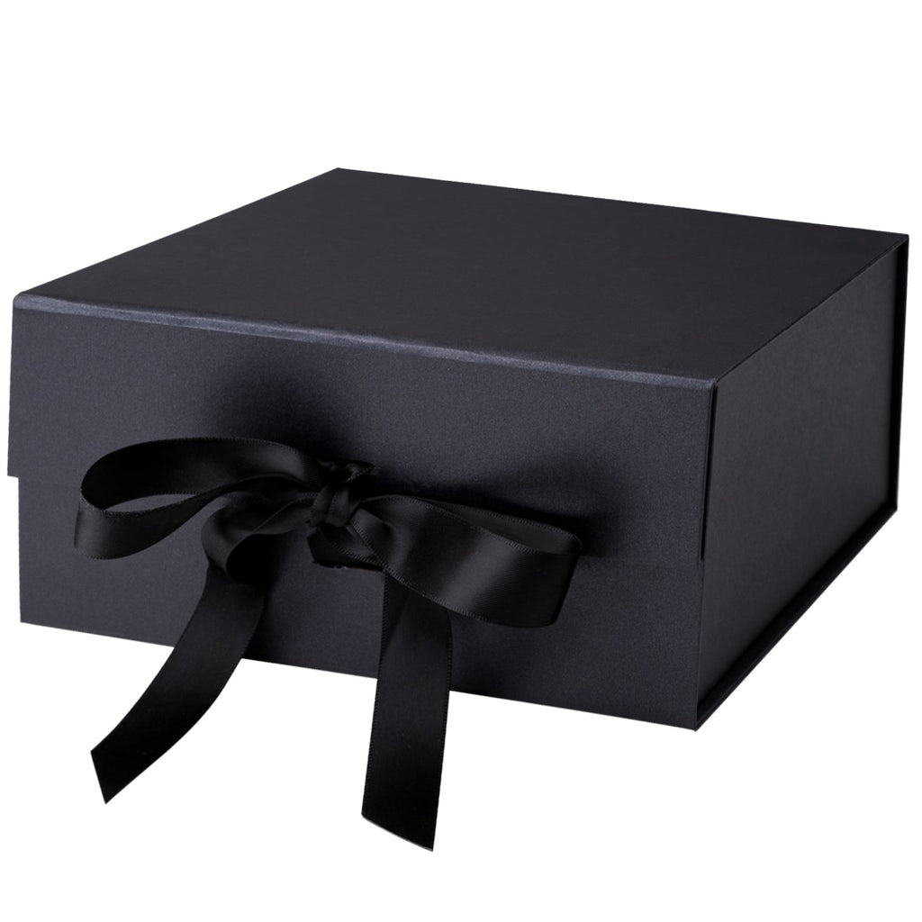 WRAPLA Black Gift Box with Satin Ribbon, 20X20X10CM Collapsible Gift Box with Magnetic Closure for Party, Wedding, Gift Wrap, Bridesmaid Proposal, Storage